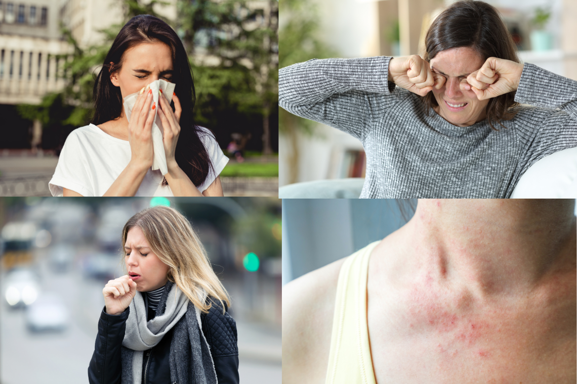 อาการทางตา เช่น คันตา เคืองตา น้ำตาไหล มีขี้ตา