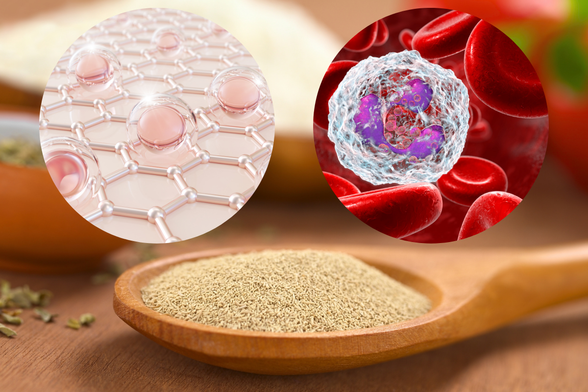 การปรับภูมิคุ้มกัน : เบต้ากลูแคนจับกับตัวรับจำเพาะบนเซลล์ภูมิคุ้มกัน กระตุ้นให้เกิดการตอบสนองของระบบภูมิคุ้มกันที่ช่วยเพิ่มความสามารถของร่างกายในการตรวจจับและทำลายเชื้อโรค